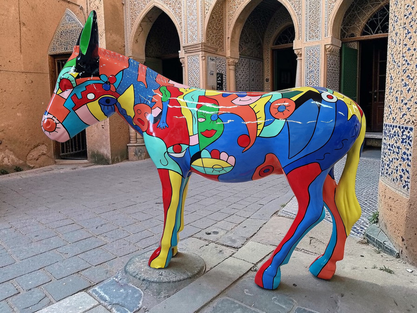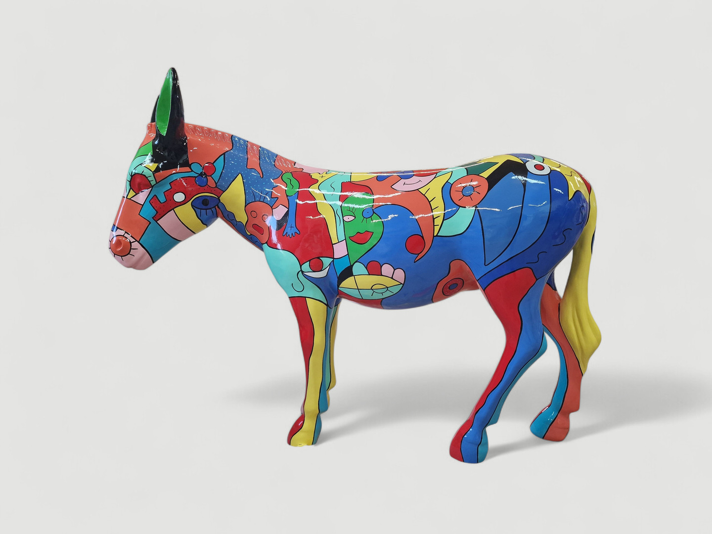 Ob als extravaganter Wächter in Ihrem Garten, als farbenfrohes Maskottchen in einem Hotel-Innenhof oder als moderner Blickfang in einer Galerie – dieser Esel zieht garantiert alle Blicke auf sich.