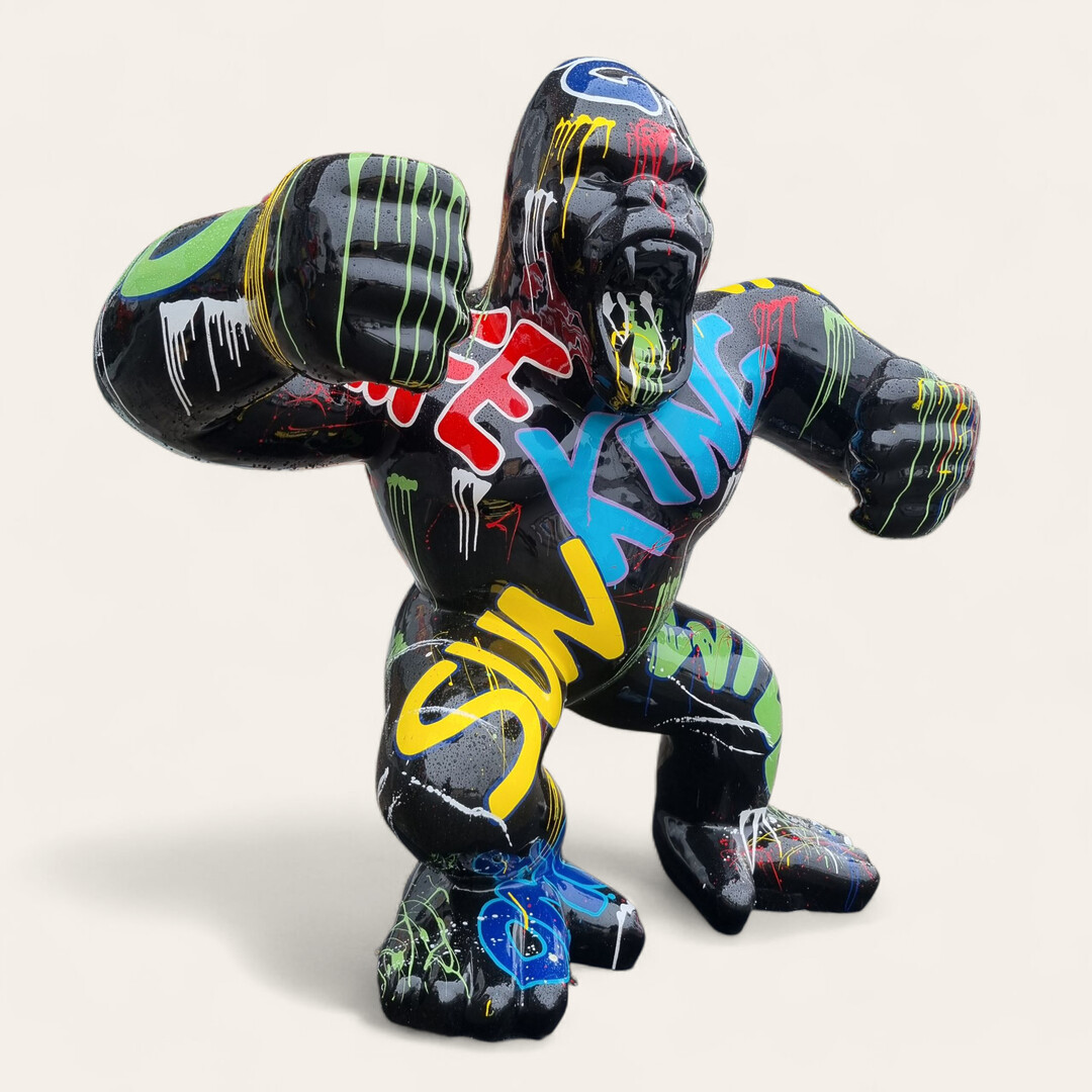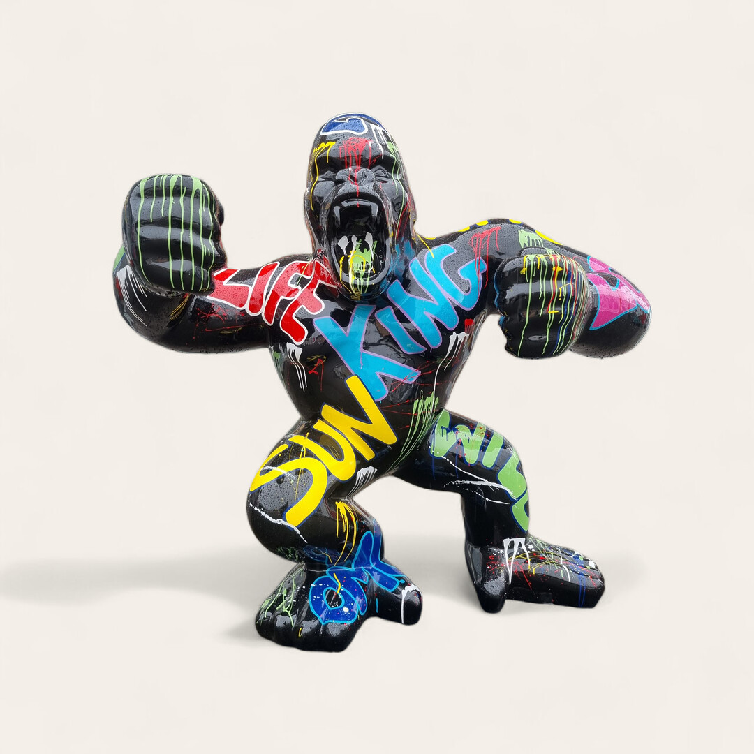 Mit der Gorilla kann ein toller Charme in Ihrer Wohnung entstehen. Die glänzende Figur mit limitierten Lackbeschichtung fügt sich perfekt in jeden Einrichtungsstil . Durch die Designer Bemalung kann das Deko- Element nicht nur im Wohnzimmer, sondern beispielsweise auch im Schlafzimmer, im Jugendzimmer oder in Ihrem Büro, Ladenlokal Garten und Terrasse für Aufregung sorgen.