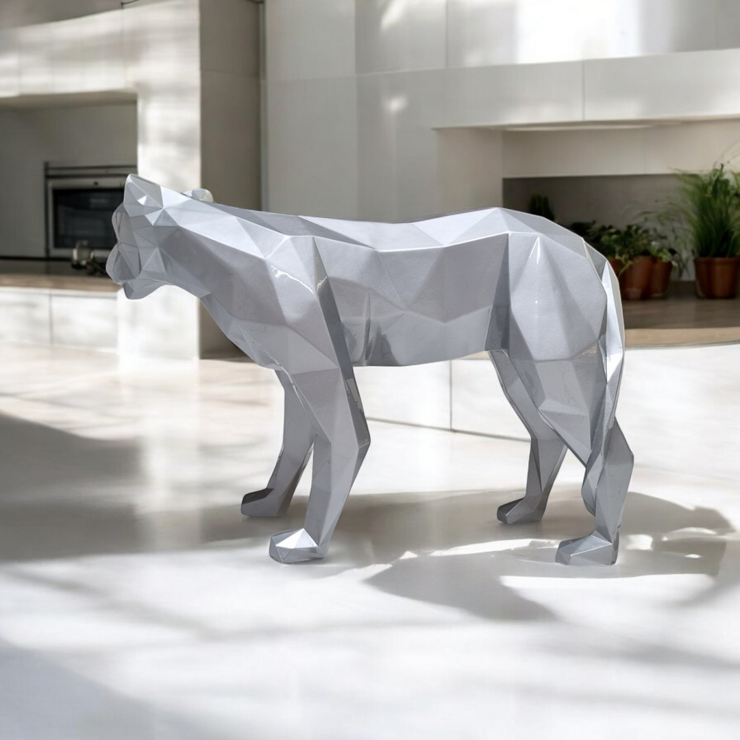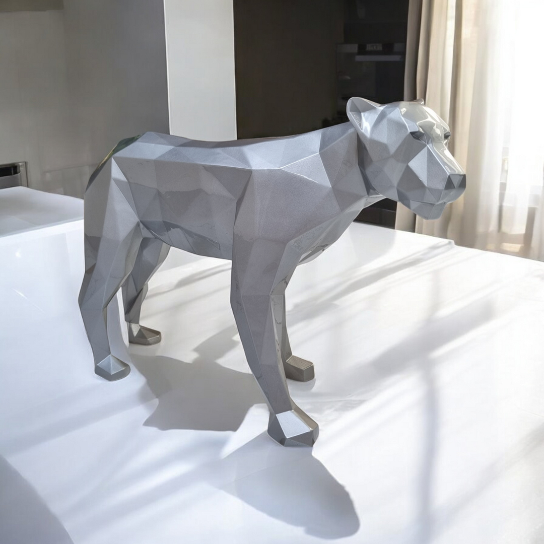 Mit der Silberner Raubkatze Figur kann ein toller Charme in Ihrer Wohnung entstehen. Die glänzende Figur mit limitierten Lackbeschichtung fügt sich perfekt in jeden Einrichtungsstil . Durch die Designer Bemalung kann das Deko- Element nicht nur im Wohnzimmer, sondern beispielsweise auch im Schlafzimmer, im Jugendzimmer oder in Ihrem Garten, Terrasse für Aufregung sorgen.