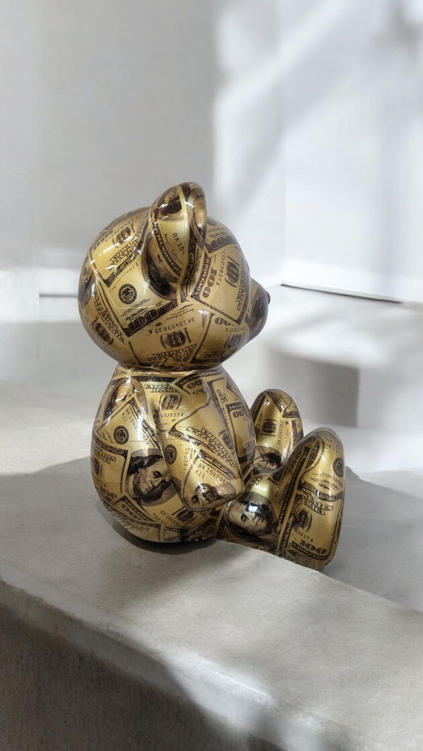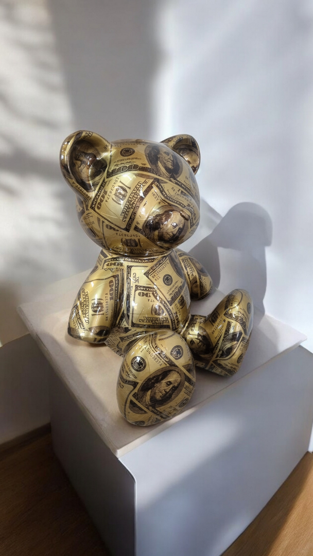 Verleihen Sie Ihrem Wohnzimmer, Ladenlokal oder Garten mit unserer Dollars Design Teddybär einen einzigartigen Charme. Diese exklusive Denkfigur ist ein wahrer Blickfang und zieht alle Blicke auf sich.