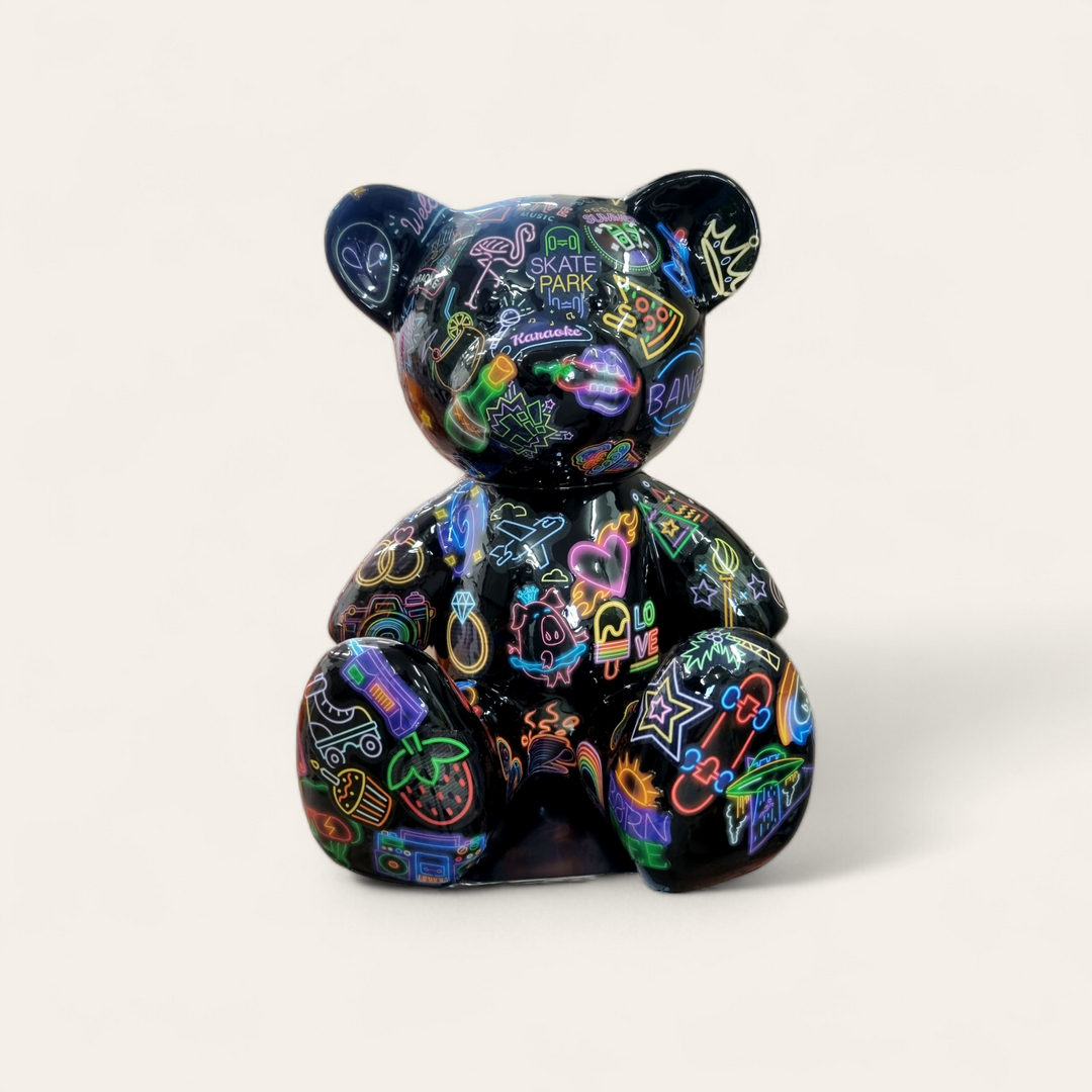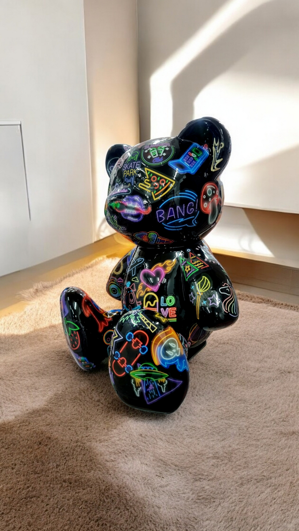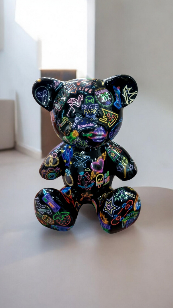 Unsere Pop-Art Teddybär ist ein Symbol für Stil und Individualität. Sie verleiht Ihrem Wohnzimmer, Ladenlokal oder Praxis eine besondere Note und lässt Ihre Umgebung lebendig werden.